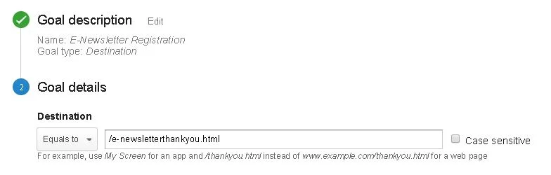 • Google Analytic goal: Track how many visitors arrive at the “Thank-you for registering for our e-newsletter!” webpage.