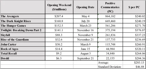 To test this hypothesis, online analytics firm Infegy collected and analyzed 10 films released in 2012 and 2013 as follows: