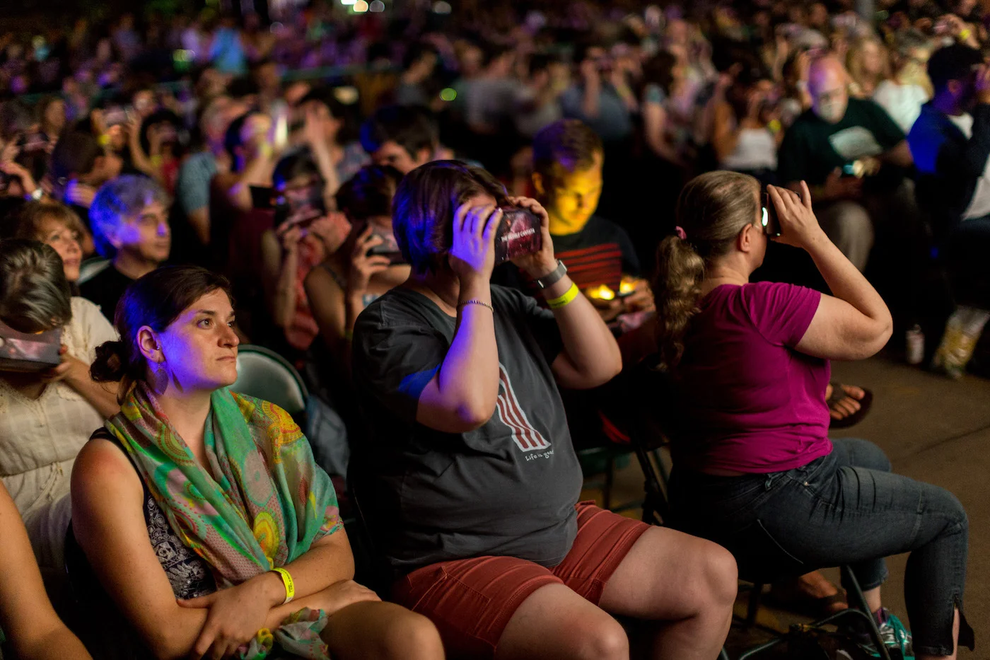 The live musical performance was primed by a percussion ensemble, TIGUE, and climaxed with a film featuring nebula-like images from the perspective of the Hubble Telescope. In the last 5 minutes of the hour-long performance, audience members were cued to put on the pre-distributed Google Cardboard Virtual Reality headsets and play the video they downloaded to their smartphones for a 360-degree view of the clouds through their headsets. Everyone had their own private journey through the Orion Nebula, yet it was a collective, communal experience that shared by over 6,000 people at the same time.