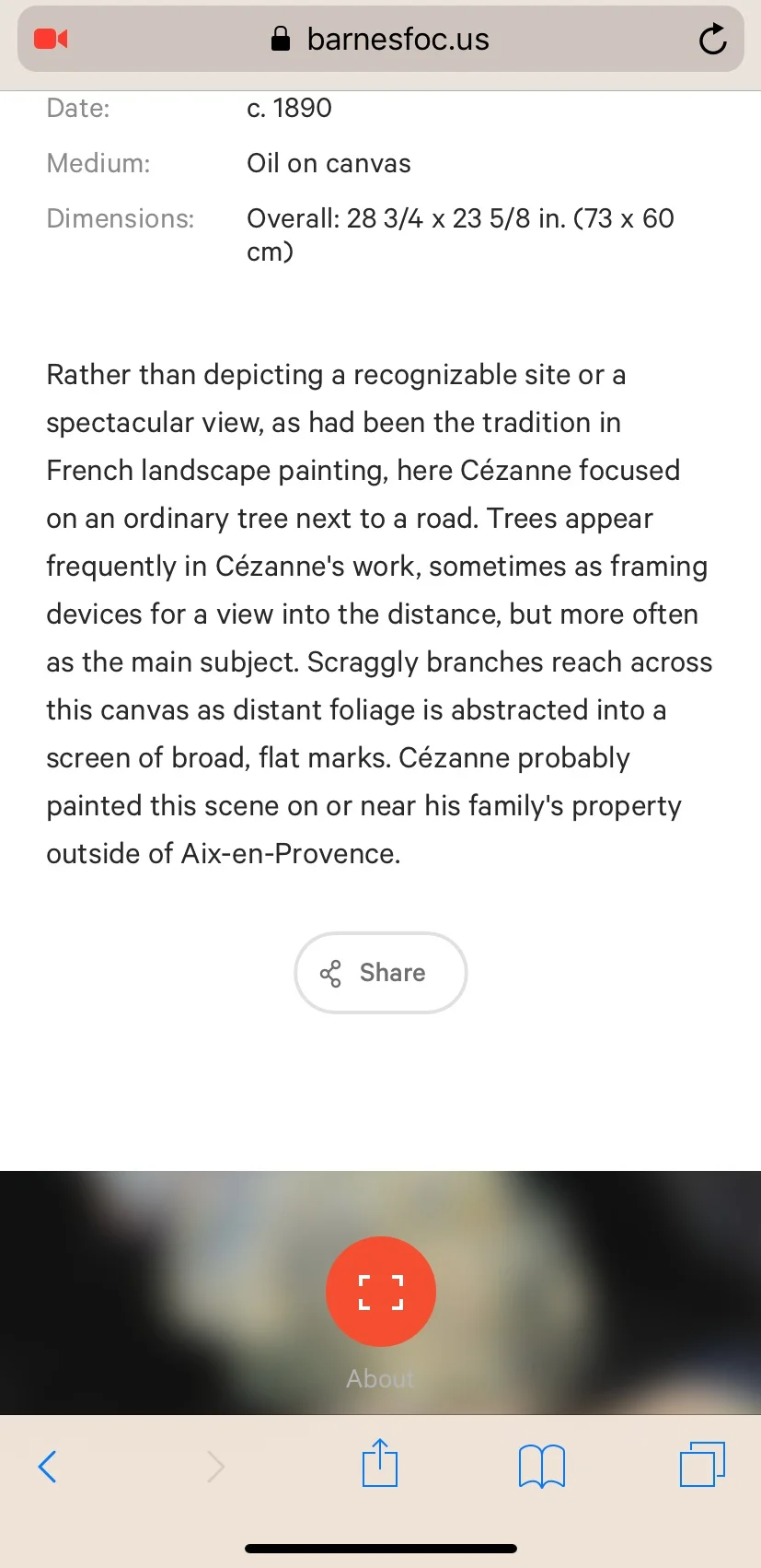 My experience was heightened by the addition of a new image recognition software that the museum began piloting several months ago. The program, called Barnes Focus, was funded by the Knight Center for Digital Innovation in Audience Engagement. Web-based, it is very simple and intuitive to use on a phone or tablet. Once you enter the web address (barnesfoc.us) on your browser and allow it access to the device’s camera, the program uses image recognition technology to identify artwork, providing the visitor with the title, artist, year, and description of the piece. I used it throughout my visit, and as a trained musician, learned a lot about the breadth of creativity and range of visual artwork from the impressionist period. If you enter your email address on the website, you will receive an email at the end of your visit with images to all the artworks that you “bookmarked” and looked at while using the program.