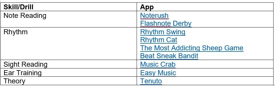 Gamification can be especially effective when students need to repeatedly practice a drill or skill, like in music learning. Students who are at the beginning stages of music learning must repeatedly practice note identification, which can become tedious. Apps that gamify this repeated practice of learning notes can make it fun and engaging. An example of this is the Note Rush app, which allows users to select the notes they want to work on and then assesses the student’s ability to identify each note by using artificial intelligence to match the pitch of their instrument to the note displayed. The app uses the game dynamic of time pressure to engage students, and uses rewards like stars to motivate them. This app can be very effective at increasing students’ motivation to learn new notes early on. The game, however, is very simplistic and likely does little to encourage long term, intrinsic motivation. This is true for many education apps that do not immerse the student, but rather focus on only one skill or component (Crappell, 12). Figure 3 lists some notable music apps that can be used for skill or drill based learning.