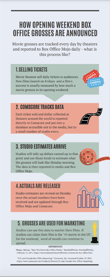How Opening Weekend Box Office Grosses are Announced. Infographic by author.