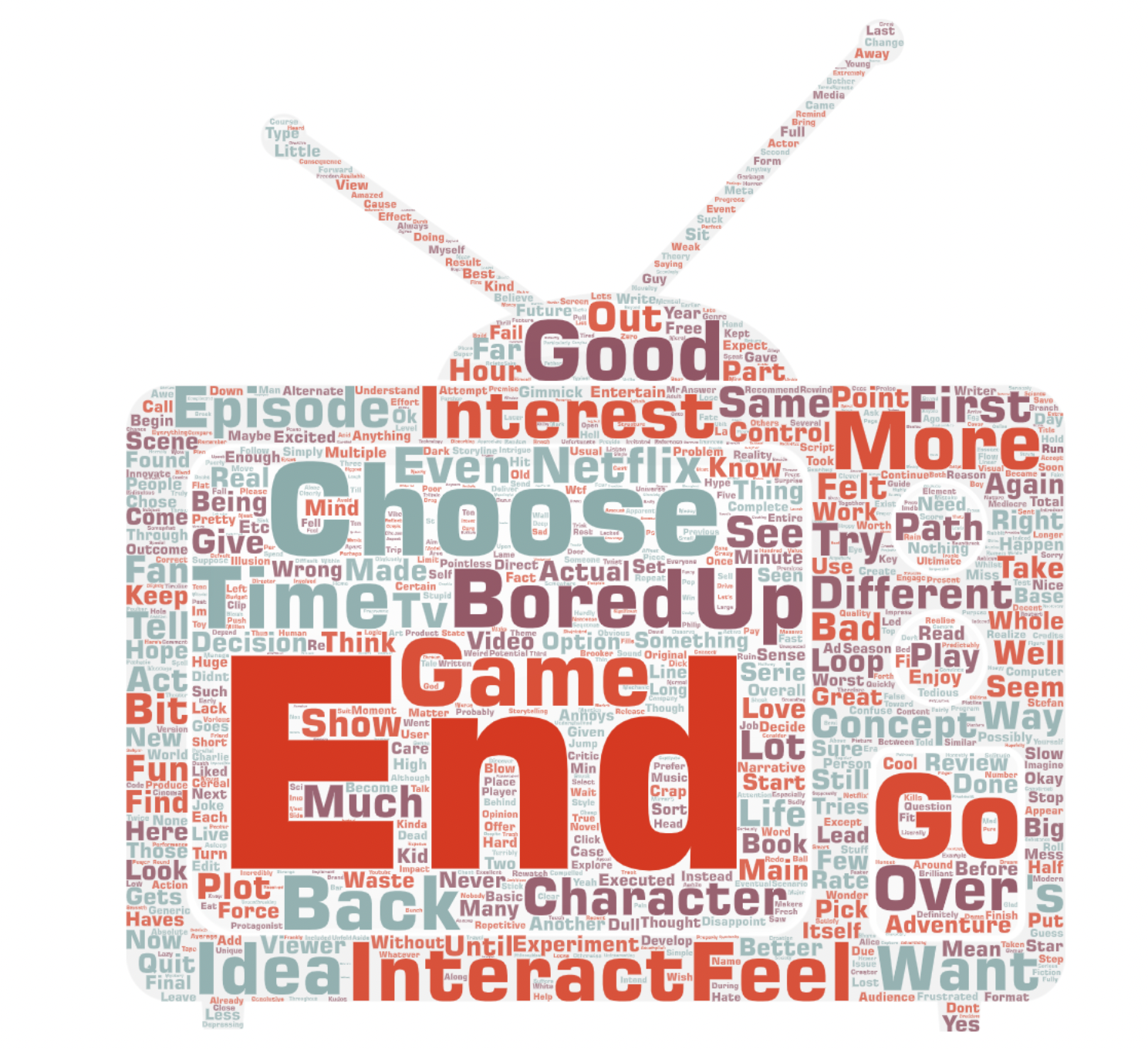 One of the top words generated from Black Mirror’s negative reviews is “bored”. While acknowledging the interactive concept was an interesting attempt, most reviews complain about the exhaustion and frustration they experience with the storyline. Among the top voted reviews on IMDb, one reviewer stated, “the executional device (the interactivity) ended up hijacking the story in so far that I was more carried away by the choices I had to make than by the flow of the story itself.” This comment supports the aforementioned theoretical framework.