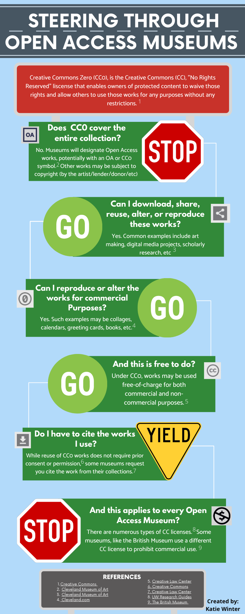 Amidst Covid-19, many museums moved to sharing collections and exhibitions virtually. However, even before Covid, museums began sharing their collections in a virtual, accessible manner with Open Access. It is estimated that nearly 1,000 cultural heritage institutions world-wide have published some or all of their collections with Open Access usage. While Open Access exists in other industries, such as in libraries, this article focuses on the context of Open Access in the museum space.