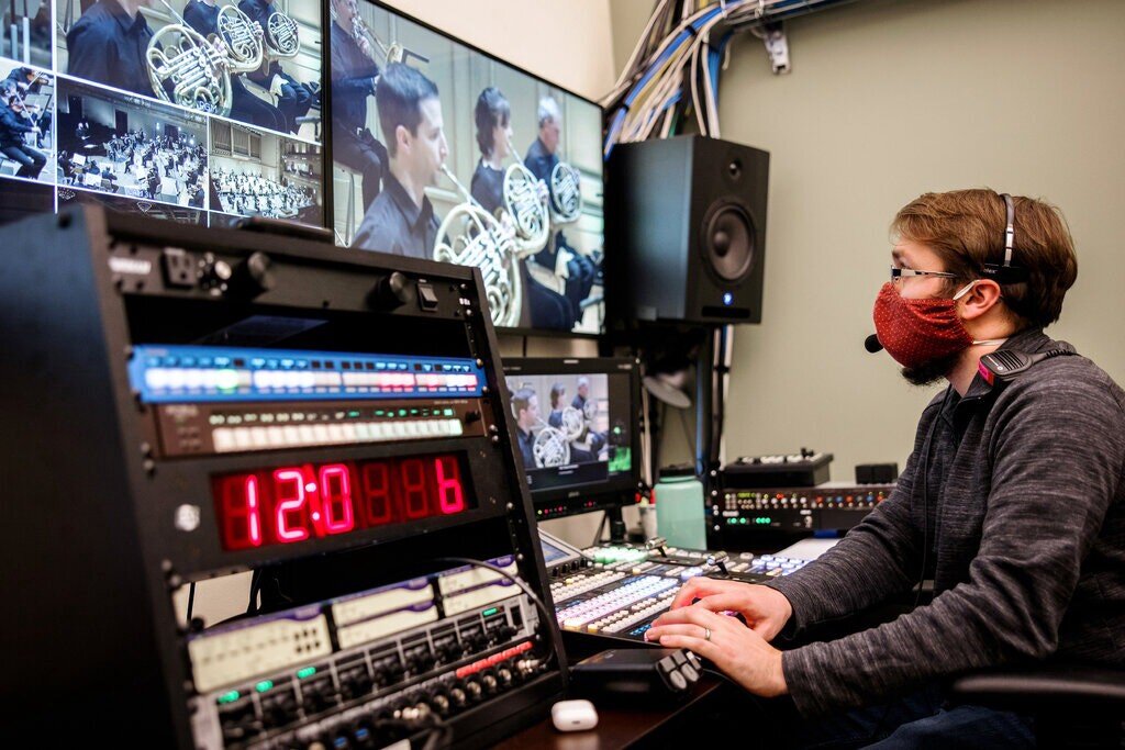 Figure 1: Video engineer Brandon Cardley at the Boston Symphony working on creating digital content. Source: New York Times.