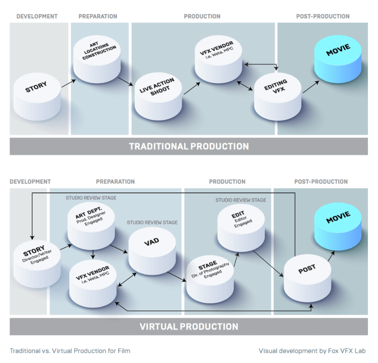Figure 1: Traditional vs. Virtual Film Production Workflow. Source: Unreal Engine