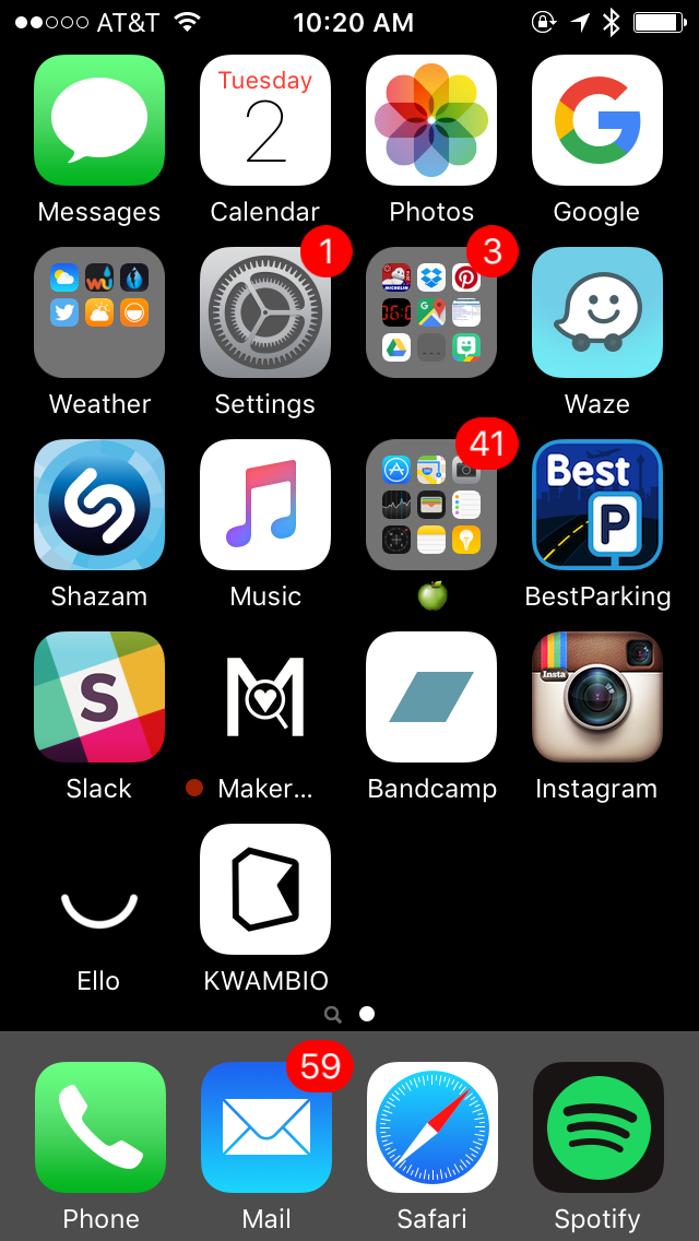 We use Slack at work, so I am on that a lot, and it enables me to keep in touch with our team in Odessa and local. I also drive in NYC, daily, so I use WAZE a lot, and Best Parking if I need a garage, but I have been in NYC long enough to know some tricks.