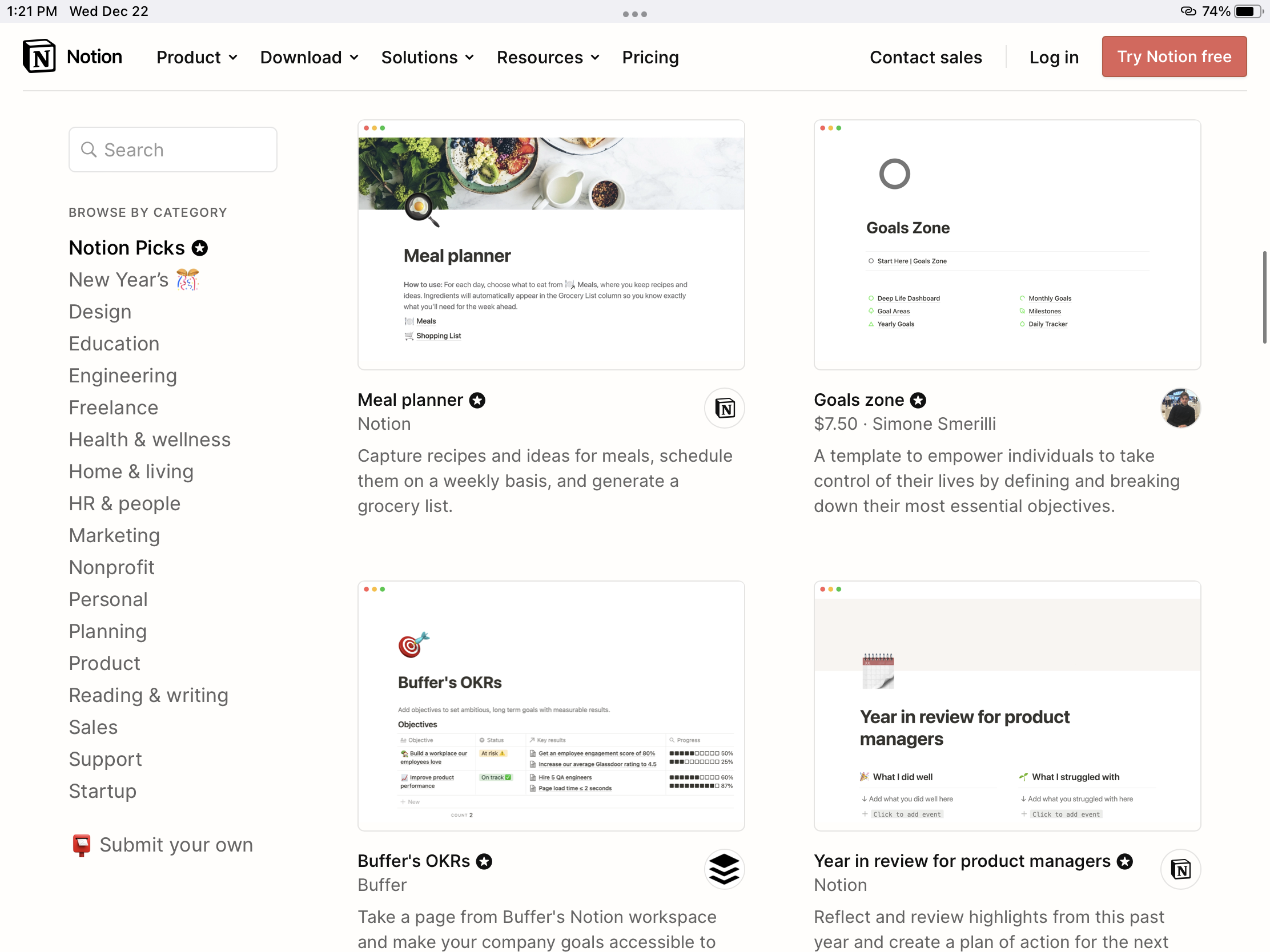 Figure 3. Sample templates for individuals or business. Source: Notion.so